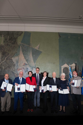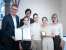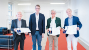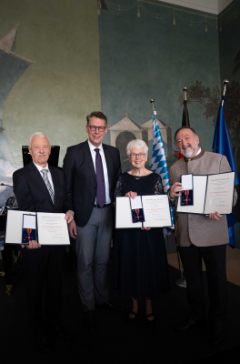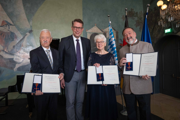 Bundesverdienstkreuz für Mediziner Prof. Dr. Stefan Burdach und „Festival der Nationen“-Begründer Werner und Winfried Roch (© Axel König/StMWK)
