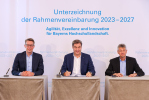 Söder, Blume und Piazolo läuten neue Ära der Hochschulsteuerung ein: Rahmenvereinbarung steigert Attraktivität und Innovationskraft der Hochschulen (©StMWK/Alexandra Beier)