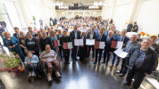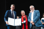 Bundesverdienstkreuz für Zahnheilkundeexperten Prof. Dr. Reinhard Hickel, musikalischen Talenteförderer Peter Köhler und Lokalhistoriker Ludwig Ried (© StMWK/Axel König)