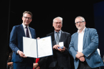 Bundesverdienstkreuz für früheren Hochschulvizepräsidenten Prof. Dr. Thomas Doyé, Bildhauer Andreas Kuhnlein sowie Musiker und Musikwissenschaftler Prof. Kolja Lessing (© StMWK)