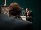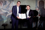 Kunstminister Markus Blume zeichnet den Lyriker Nico Bleutge im Markgräflichen Opernhaus Bayreuth mit dem Jean-Paul-Preis aus (© Andreas Harbach)