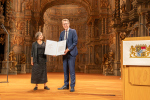 „Olympisches Gold der Denkmalpflege für Bad Kissingen“: Kunstminister Blume übergibt Urkunde zur Aufnahme von Bad Kissingen in die UNESCO-Welterbeliste (©Axel König/StMWK)