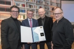 Staatsminister Bernd Sibler überreicht das Verdienstkreuz am Bande des Verdienstordens der Bundesrepublik Deutschland an Dr. Martin Andreas, Prof. Dr. Hans Keppler und Dr. Wolfgang A. Slaby am 12. März 2019 in München