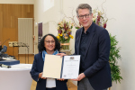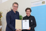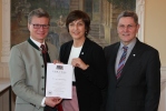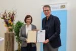 Wissenschaftsminister Bernd Sibler überreicht Prof. Dr. Beck-Meuth die Ernennungsurkunde zur Präsidentin der Hochschule Aschaffenburg und übergibt ein Dankesschreiben an den scheidenden Präsidenten Prof. Dr. Diwischek (Foto: HAW Aschaffenburg)
